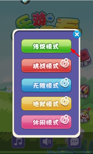 3、点击传统模式,打开游戏内容,将两个相同的图片连接即可消除。
