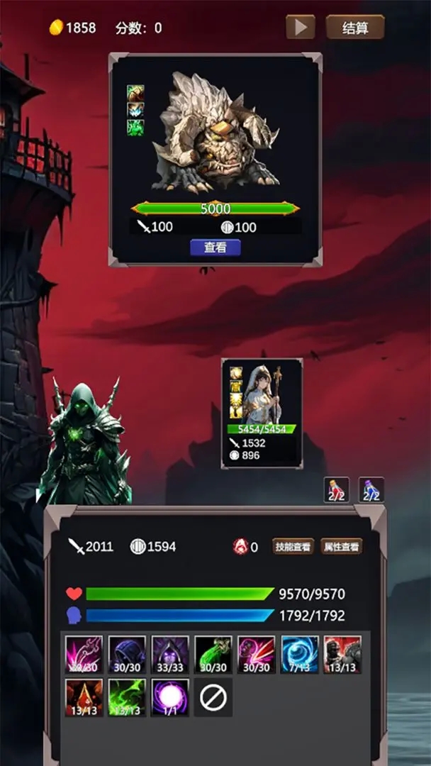 1、玩法还行打发时间还是不错,开局广告刷金币,去商人那里买技能书毒素和流血买到2-3级最佳,前期核心就是毒素和流血这两个被动必须要,推图的时候学个毒翻倍,基本前面就很容易过了,后面就是刷金币升级,强化技能属性这些