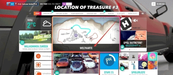 1、进入世界地图,寻找财富岛宝藏2,选择获取财富岛宝藏2路线,再查看比赛用的车型。