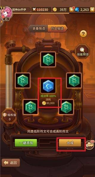4、添加好符文之后,中间就会显示合成之后的符文,这里就是低等级的符文合成为一个高等级的符文。