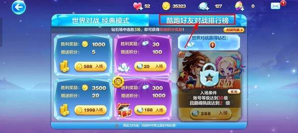 3、选择玩家对战模式进入之后,选择上方的【酷跑好友对战排行榜】进入;