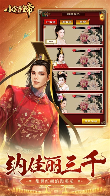 小宝当皇帝游戏是一款新版宫廷皇帝经营游戏,人生旅行就像一场戏,一步一步。如果在官方竞技场上很强壮,它会阻碍你登上这个国家第一人的宝座吗。许多古往今来的圣人都被征召入伍。在帮主陈金南的帮助下,我们可以帮你在官道上斩荆棘,展现你的实力!