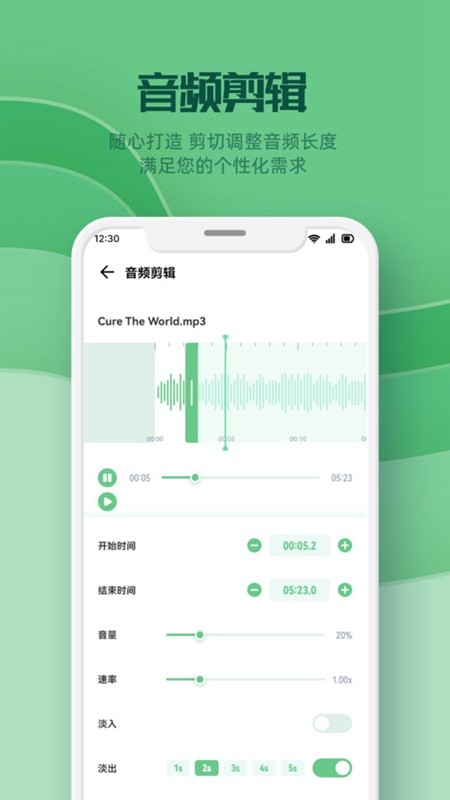 2、具有音频剪切、音频混音、音频拼接合成、音频格式转换等多种功能,随意选择即可剪辑的。
