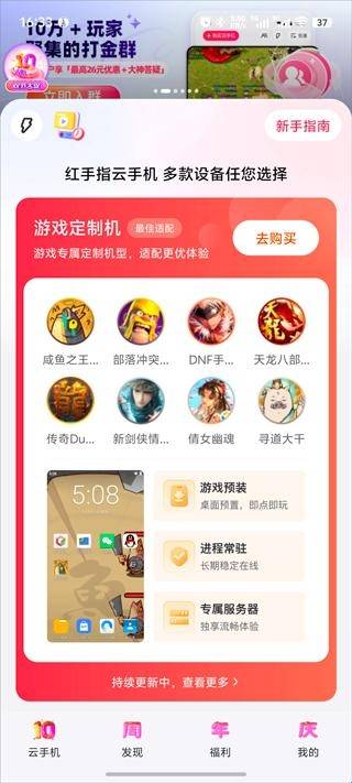 1、打开红手指云手机app,玩家可购买或者通过观看广告的方式获取云手机设备;