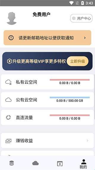 大空间云存储,免费用户注册即可获得500GB空间。升级VIP会员可获得最多15TB空间。