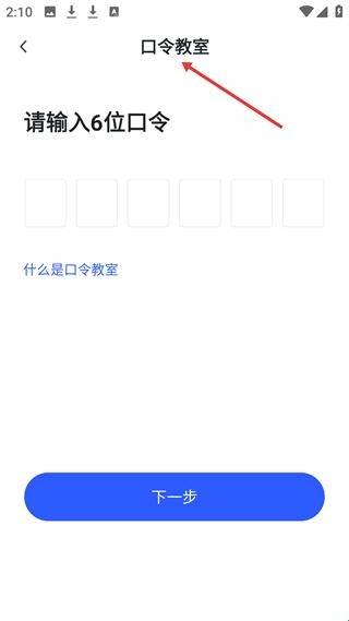 3、口令教室页面需输入6位口令,输入后点下一步,页面有什么是口令教室的说明入口方便用户了解。