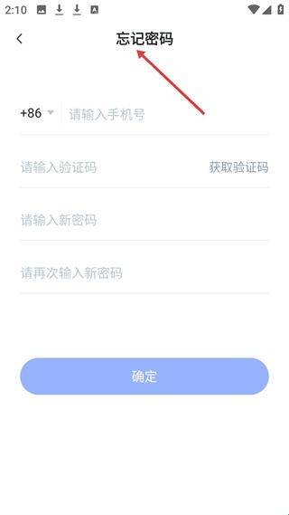 4、忘记密码页面需输入手机号,获取并输入验证码,再输入新密码及再次确认新密码,最后点击确定完成密码重置。