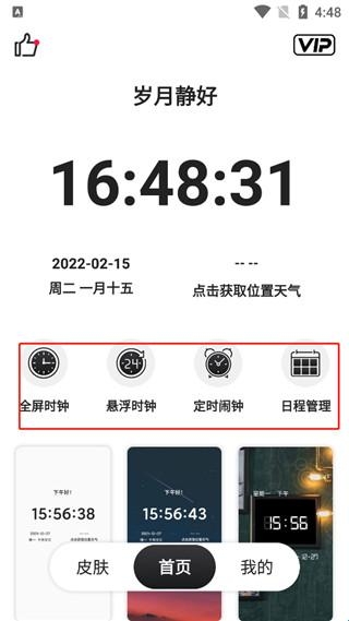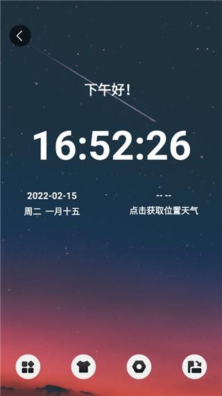 2.点击全屏时钟,里面多种锁屏时钟主题任您选择,更能显示位置,天气状况;
