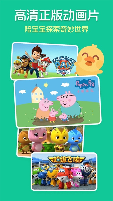 还收录了海量宝宝喜爱的热门动画片:小猪佩奇、汪汪队、喜羊羊与灰太狼、倒霉熊、超级飞侠、兔小贝、啵乐乐、可可小爱、迷你特工队、海底小纵队、瑞奇宝宝、太友和萌鸡小队……等,超多小朋友喜爱的动画明星都在这里聚集,陪伴宝宝一起成长!