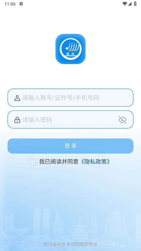 1、登录“贵州招考”APP(通过各报名点获取安装包),输入身份证号登录,需先在报名点采集身份证信息。