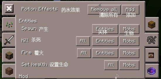 11、Kill栏,我们能选择要杀死的生物或者实体,或者是将地图中的所有物品清除。
