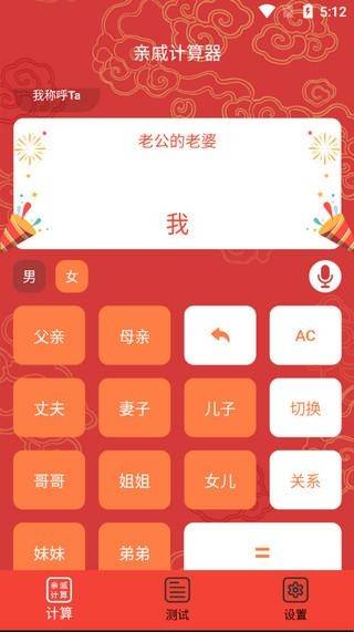 1、点击各种基本称谓,即可计算出最后的称呼。