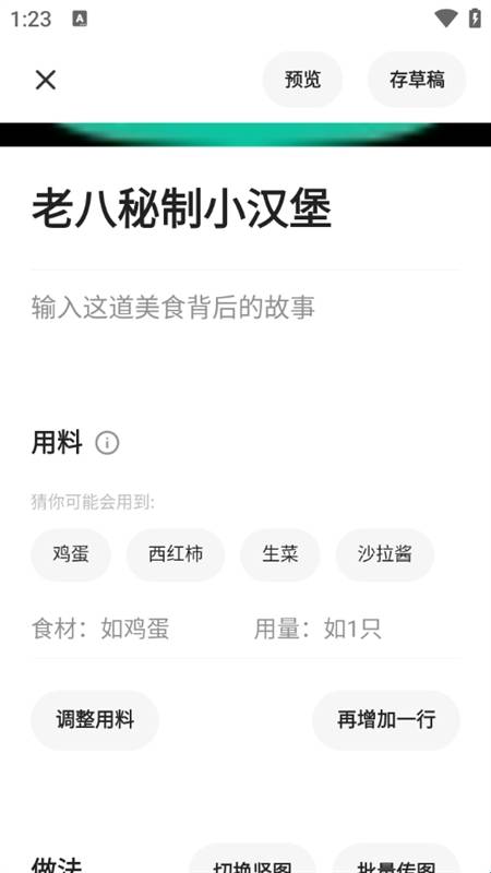 5、上传菜谱封面和其他内容。