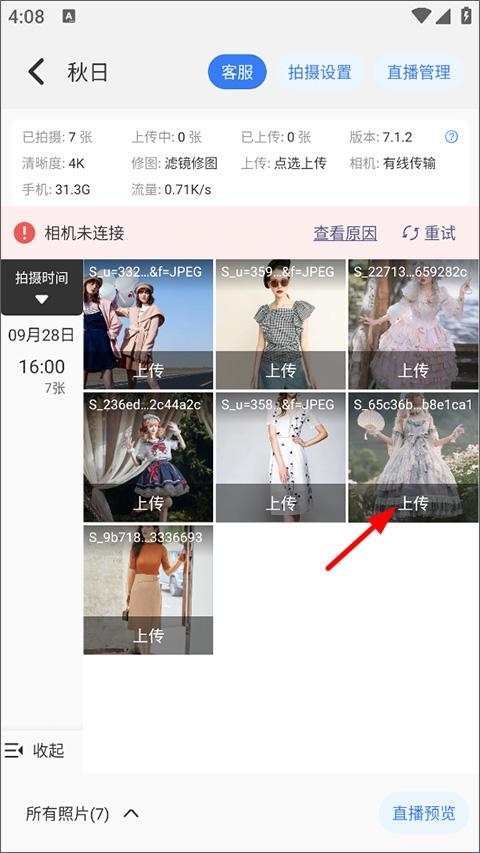 6、返回创建的照片直播即可看到照片,点击上传按钮就可以把照片上传。
