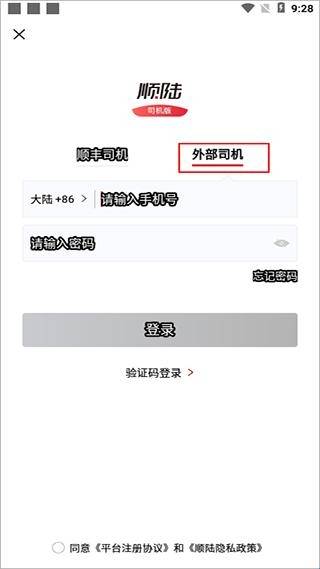 1、在本站下载安装软件到手机上,进入软件注册登入账号信息不是顺丰员工选择外部司机注册;