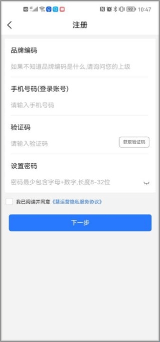 3、填写个人信息,品牌编码不知道的话可以问问你的上级。