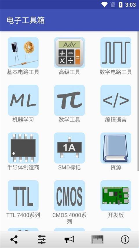 电子工具箱(Electronics Toolbox),一款功能十分强大的专业电路计算器。软件体积小,但拥有丰富多样的电子专业实用功能,包括基本的电路工具、机器学习、编程语言、SMD标记等,每一个不同的功能使用起来都十分的顺畅,满足电子工程师等相关专业工作人员的使用需求。