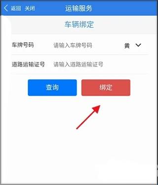 7、进入运输服务,找到车辆绑定,输入车辆号码与道路运输证号,点击下方的绑定完成。