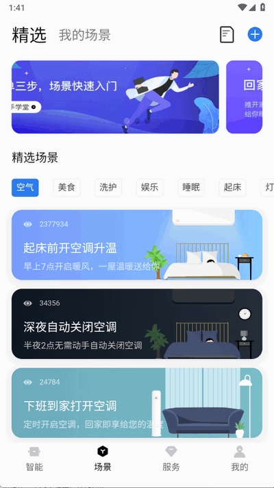 5、智能场景新体验,一键开启推荐场景和自定义场景自由DIY,为您开启智能轻便生活