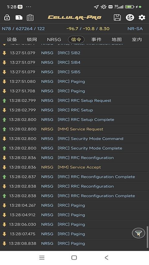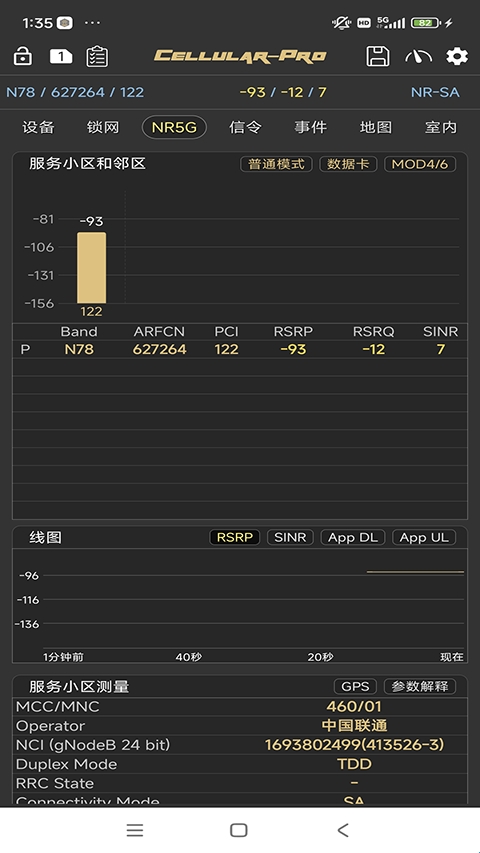 2、提供5G/LTE/GSM/WCDMA的无线测量参数显示。
