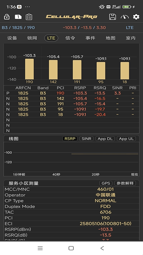 提供LTE视图显示重要参数,包括小区、带宽、频点、信号、干扰等信息,让用户更清晰地了解网络状态。