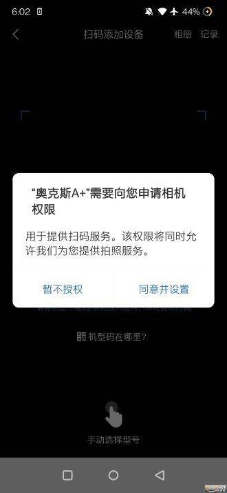 1、下载应用”奥克斯A+”应用,点击”设备后”选择”添加设备”。