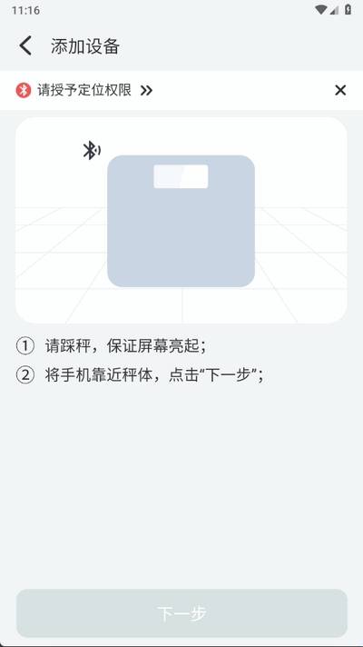 1、将人体秤放在硬实平整的地面上,打开手机系统蓝牙和GPS定位。