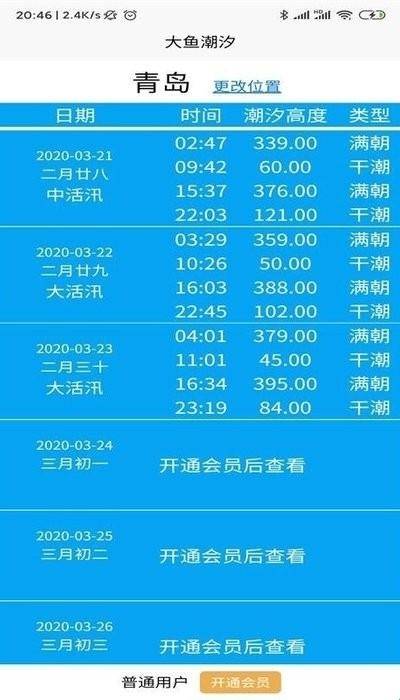 3、你可以查看每天的涨退潮时间、潮高以及相关的天气信息。这对于计划赶海、钓鱼等活动非常有帮助。