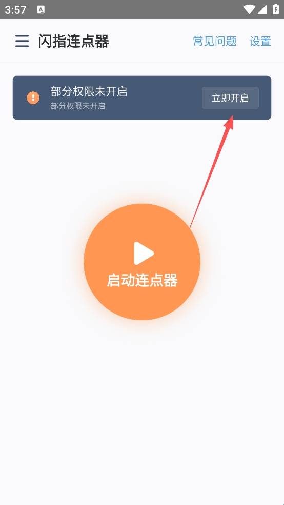 1、打开闪指连点器App,点击开启部分权限。