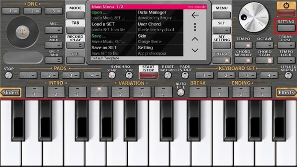 1、在本站下载安装,进入首页界面,用户可以发现ORG电子琴还是全英文的,点击界面的设置