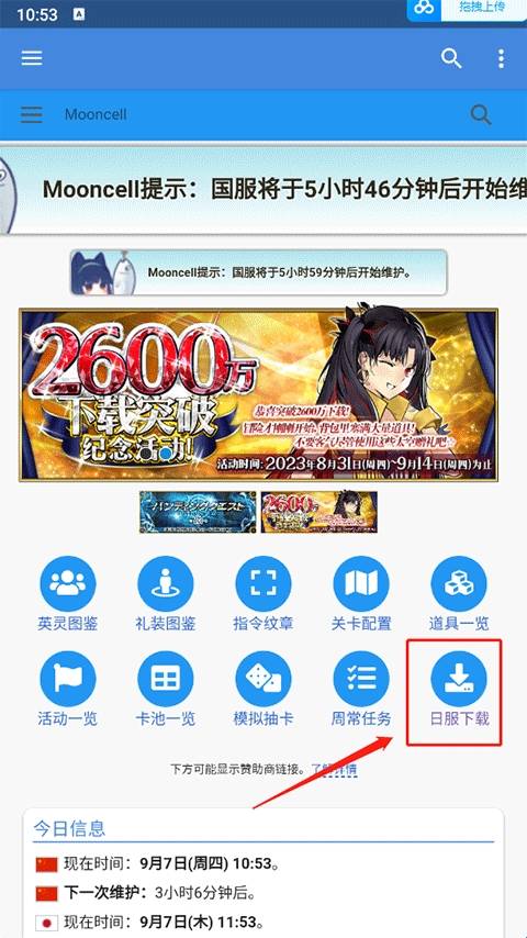 1、打开FGOwikiMooncell后,在首页中点击日服下载功能。