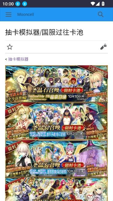 一款专门为FGO玩家们提供各种FGO游戏相关内容的软件——FGOwikiMooncell,这里不仅拥有最新最全的游戏资讯、活动和攻略内容,用户可以在这第一时间了解全面、准确、及时的游戏资料和资讯。此外软件还提供了仿真度超高的抽卡模拟器,让你无限体验抽卡乐趣。