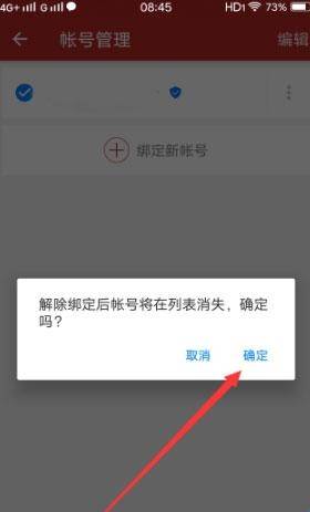 5、屏幕中会出现“解绑后账号将在列表消失”的系统提示,我们只需选择“确定”即可。
