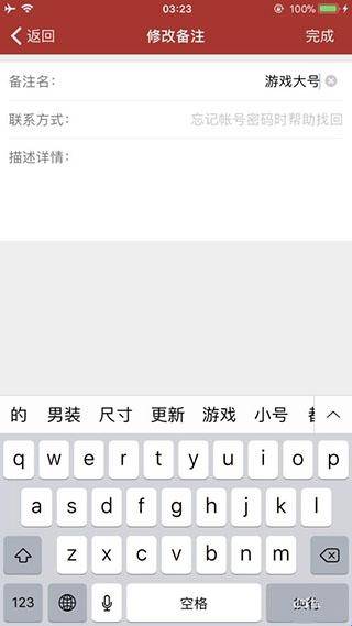 5、在备注里面我们可以填上我们这个账号信息的内容,这样有助于我们记住我们这个号是干嘛的;