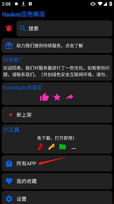 1、打开app后,在首页中点击所有app。