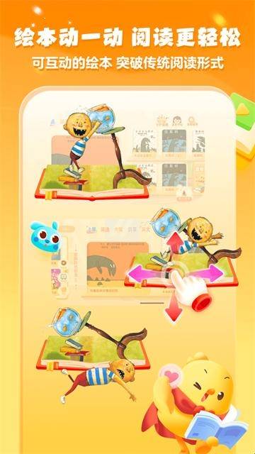 孩子可以通过手指触点,与书中人物、动物、景物进行互动,让孩子沉浸式体验绘本乐趣,充分探索每一个故事。