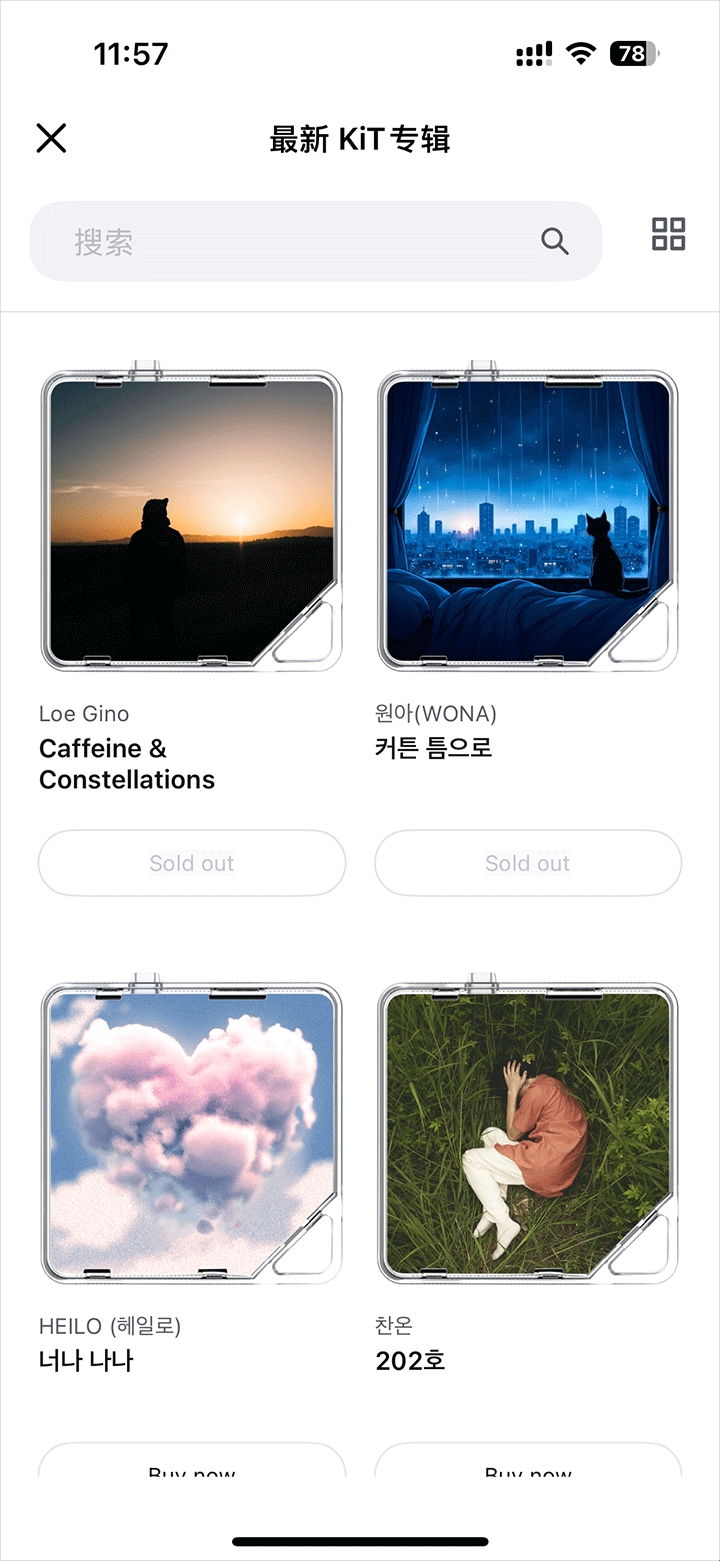 1、初次使用时,你可能会看到页面上出现许多黑色的kit专辑封面——这是因为还未与实体kit专辑进行连接或下载相应内容。