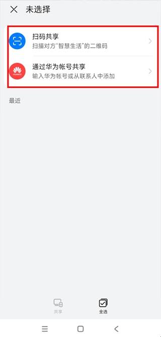 3、以通过华为帐号共享为例,点击通过华为帐号共享。