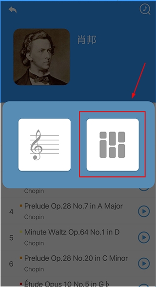 1、打开乱弹琴app,选择需要练习的钢琴曲目,如:肖邦。