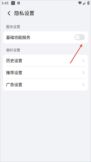 3、进入隐私设置页面,找到广告设置关闭即可。