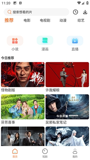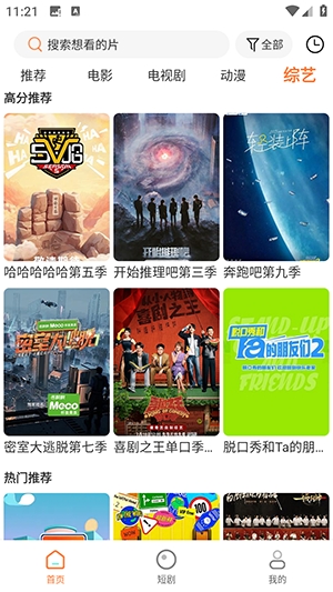 1、打开软件进入首页,可以搜索想看的片,也可以根据分类寻找。
