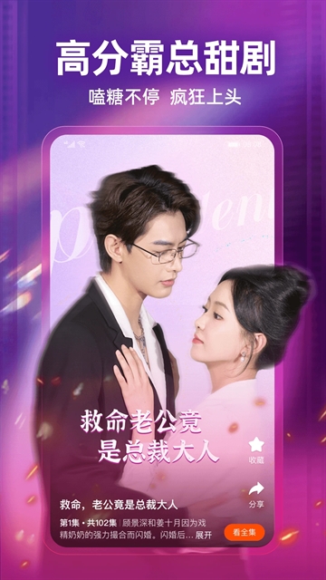 2、竖屏的全屏观看模式,提供丰富多样、贴近生活的原创短剧。