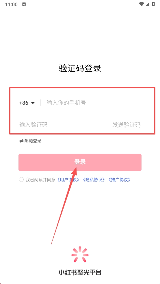 2、运行后输入手机号和验证码点击登陆。