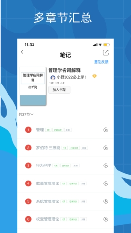 3、进入笔记模块,定位目标笔记,查看章节学习数据,点击播放按钮,启动语音带背。