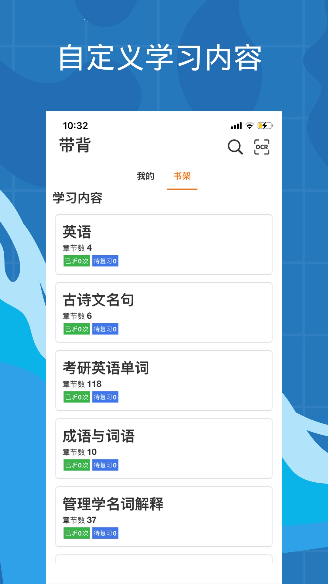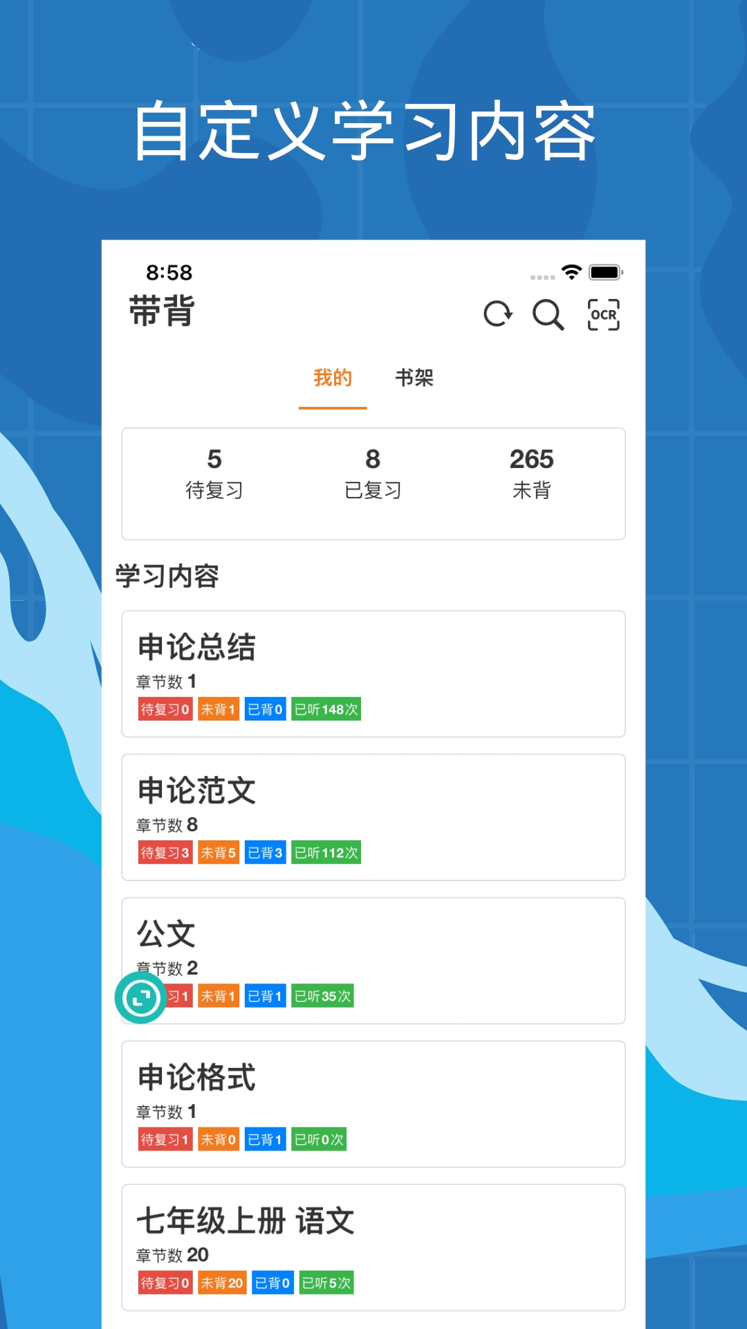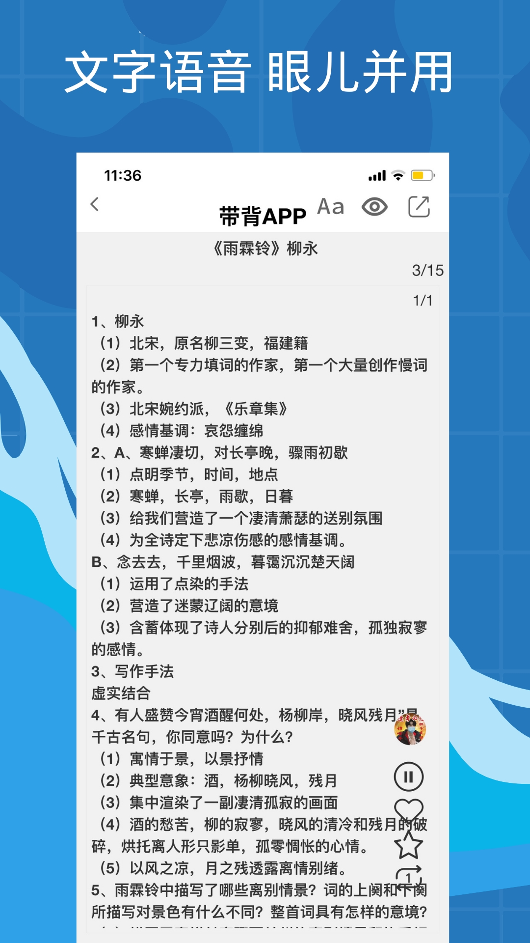 带背app是一款可以帮助用户记忆的软件,用户可以在软件上学习行测申论等考公知识。用户可以跟随软件的进度每天坚持练习,语音带背模式可以在熄屏时使用,用户可以利用自己的闲暇时间来提升自己,是考取事业单位、公务员等职位的最佳选择。