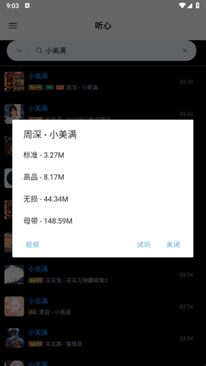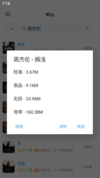 4、点击音乐,选择听歌的模式,有标准、高频、无损以及母带等。