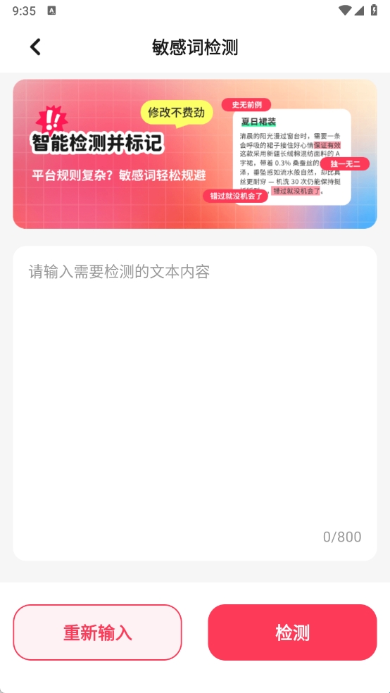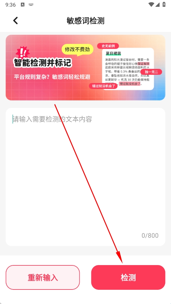 3、在文本输入框中粘贴或输入需要检测的文案。