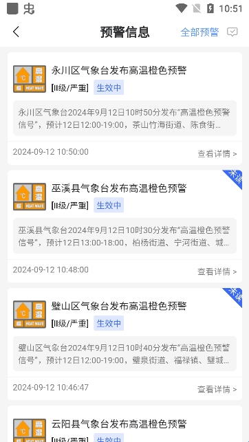 4、软件还会根据用户所在的位置发出各种预警通知。