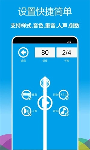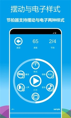 音乐节拍器是一款面向广大音乐爱好者打造的音乐节拍器软件。软件拥有多种节拍音效和动感音效,适用于钢琴、吉他、古筝、电子琴、架子鼓等多种乐器,支持节拍和节奏2种学习模式,用户可以自由设定好节拍增加的时间、速度等参数,满足用户不同的学习需求。
