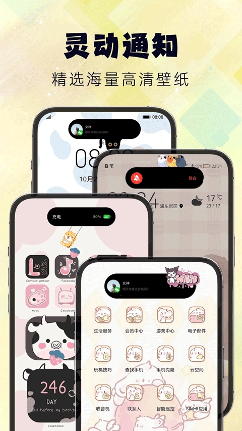 灵动屿,一款能够让你也体验到苹果IOS系统同款灵动岛功能的手机美化APP。在这里你可以自由添加任何需要的小组件,每一款小组件都十分精美和实用,用户还可以根据自己的审美自定义设置图标效果,同时还可以一键更换手机壁纸,让你的手机桌面更好看。